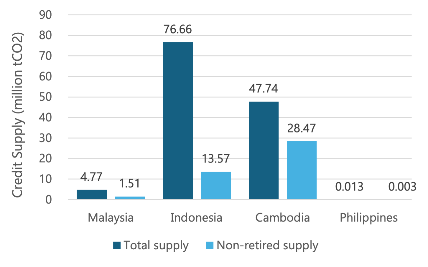 Unretired credits, making up the active supply, account for 43 million VERs, with projects in Cambodia (28 million) and Indonesia (13 million) making up for bulk of that.